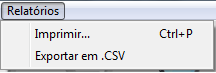 Após gerar, abrirá a tela com as informações do relatório requisitado, é possível Imprimir e exportar para CSV, clicando no menu Relatórios.