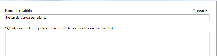 Informe um nome para o relatório e em seguida escreva o comando SQL, apenas select será aceito!