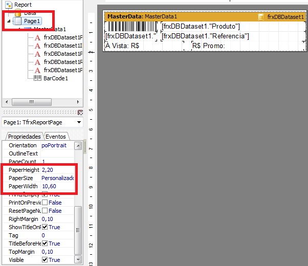 - No campo PaperHeight defina a altura da etiqueta.