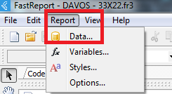 Caso queira adicionar as fotos na etiqueta, no Fast Report clique em Report - Data;
