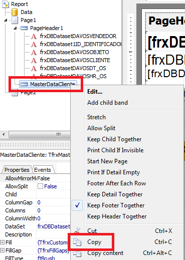 Agora, localize a variável MasterDataCliente, clique com o botão direito - Copy;