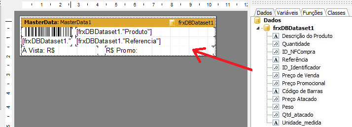Mais campos poderão ser adicionados a etiqueta, basta escolher qual necessita e arrastar para dentro do campo da etiqueta, no local que necessita.
