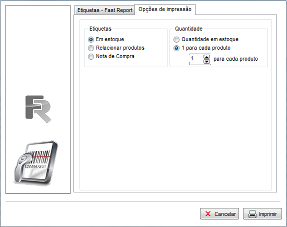 - Quantidade em estoque: Irá imprimir as etiquetas de acordo com a quantidade dos itens em estoque.