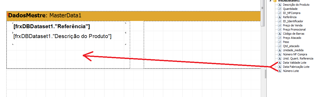 Em seguida, arraste os campos relativos ao lote no local de sua preferência, na etiqueta.