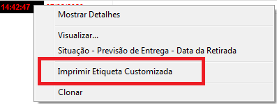 Após gerar o DAV-OS, clique com o botão direito sobre ele e vá até a opção Imprimir Etiqueta Customizada.