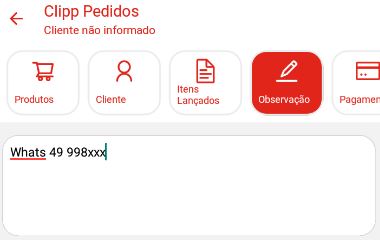 Na aba Observações é possível adicionar mais dados ao pedido.