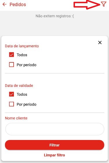 Clicando no ícone de filtragem é possível filtrar na tela determinado pedido.