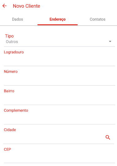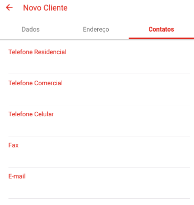 Na aba de cadastro de clientes, será necessário informar todos os dados nas telas abaixo, clicando nas respectivas abas.