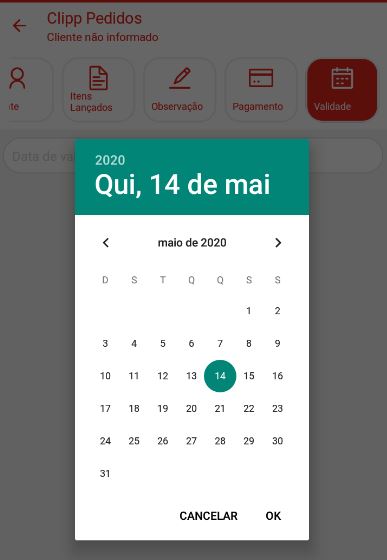 Na aba Validade defina a data limite que valerá esse pedido lançado.