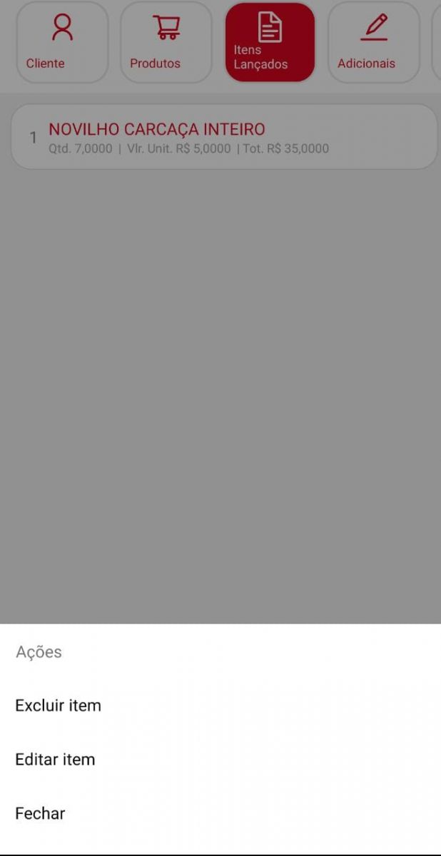 Marcando o pedido, serão disponibilizadas as seguintes opções: