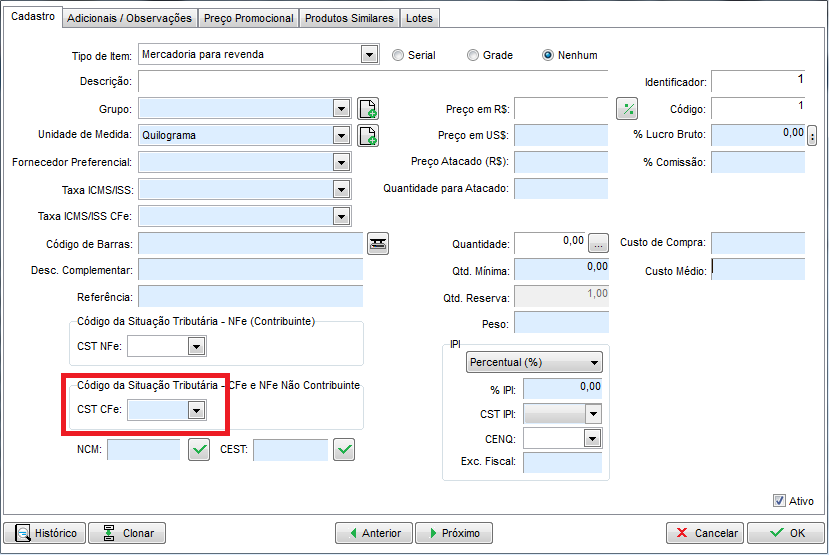 Caso esteja emitindo nota para um cliente Não contribuinte ou CPF abra o cadastro do produto no estoque