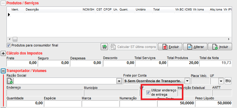 Agora, reabra sua nota e marque a opção Utilizar endereço de entrega: