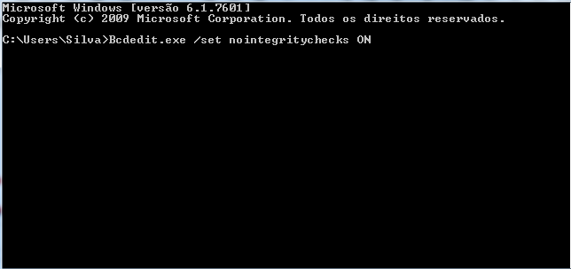 bcdedit /set loadoptions DDISABLE_INTEGRITY_CHECKS