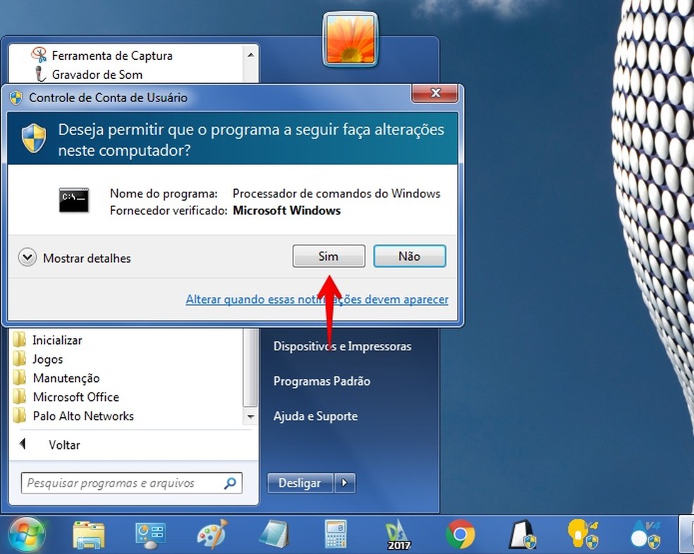 Agora, clique em Sim para confirmar e abrir a janela do Prompt de Comando.
