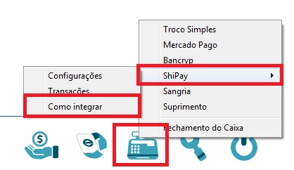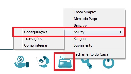 Na tela de caixa livre, clique no ícone do caixa ou pressione a tecla F9 e siga até a opção Shipay - Configurações;