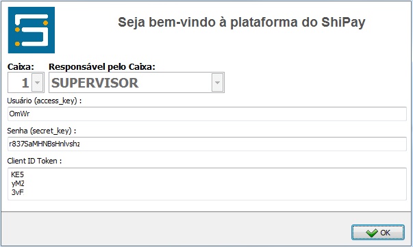 Em seguida, informe as credenciais repassadas pela equipe Shipay;