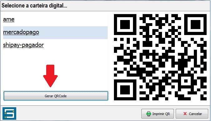 Em seguida, defina a carteira (conforme contratada carteira digital e informada junto a Shipay) e clique no botão Gerar QRCode;