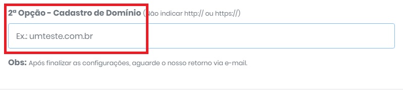 Nessa opção, Não deve-se ndicar http:// ou https://
