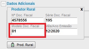 Para resolver a situação apresentada, reabra a nota fiscal e clique no botão Prod. Rural;