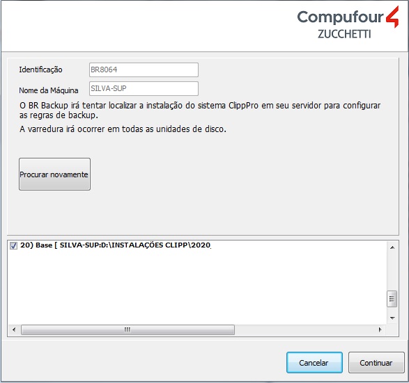 ATENÇÃO! Caso formate o micro ou troque de computador, entre em contato com o suporte do BRBackup pra poder realizar a varredura correta novamente!