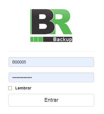 Através do endereço http://brbackup.brproj.com.br/ será possível ter acesso ao seus dados, na tela inicial, informe as credenciais recebidas anteriormente em seu e-mail e clique em Entrar;