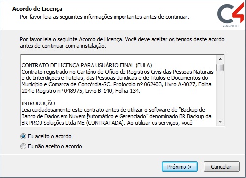 Leia atentamente o acordo de licença e clique no botão Próximo;