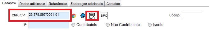 Em seguida, preencha o CPF/CNPJ do cliente e clique no botão de consulta: