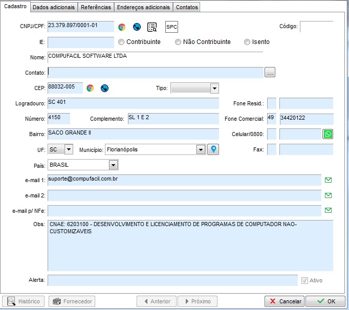 O cadastro será preenchido, clique em ok para salvar.