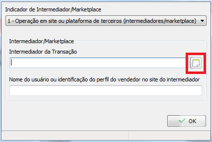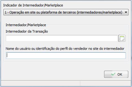 Ainda na nota fiscal, é possível cadastrar e determinar o intermediador da operação, clicando no rodapé, na opção Marketplace;