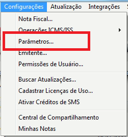 Para habilitar na NFe, acesse Configurações - Parâmetros;