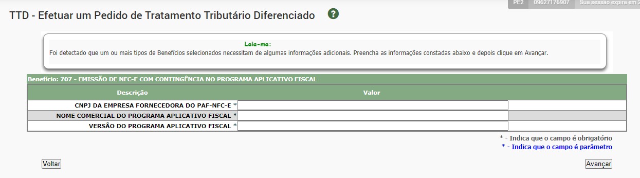Preenchimento do TTD 707 - Tratamento Tributário Diferenciado (SC) para utilizar
