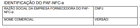 - CNPJ DA EMPRESA FORNECEDORA DO PAF-NFC-E: 03.916.076/0004-00