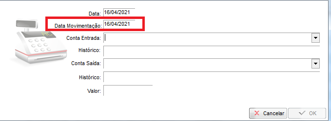 Após lançar com as datas neste campo, ficará gravado na coluna de Data Movimentação, gerando o relatório com a opção marcada, irá considerar este campo.