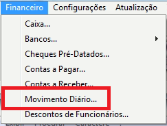 Para acessar o relatório, clique em Financeiro - Movimento Diário;
