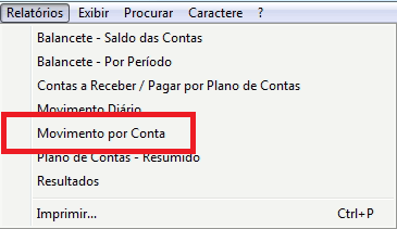 Em seguida, clique em Relatórios - Movimento por Conta;