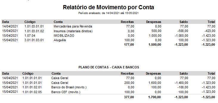 Relatório de Movimento por Conta
