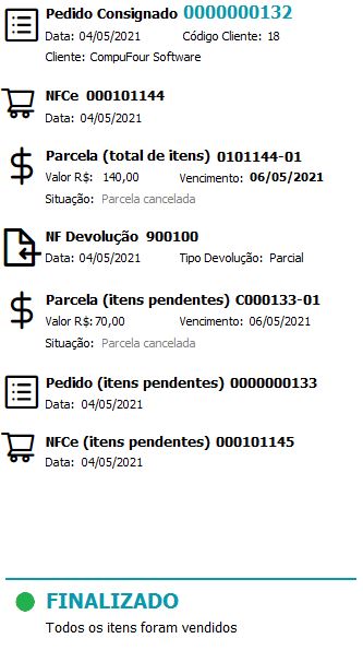 Para verificar o pedido de venda lançado, abra Compras/Vendas - Consignado;