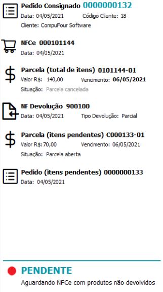 O Pedido constará com status de PENDENTE, ou seja, ainda não foi importado para NFC-e.