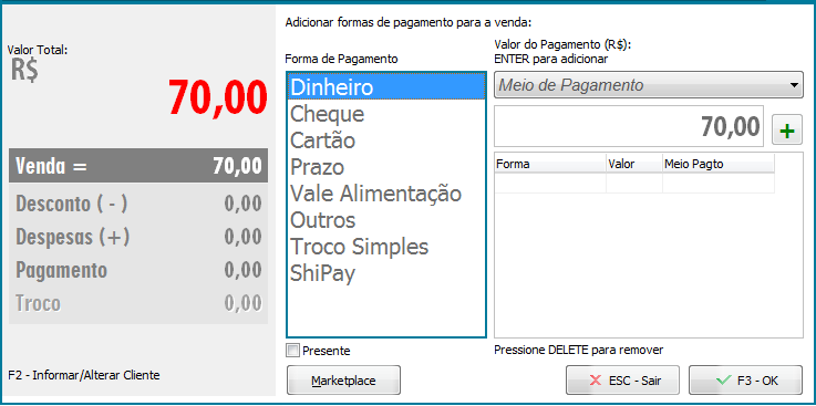 Após lançar o pedido de venda, é necessário importar para NFC-e, para isso, abra o emissor de NFC-e e na tela de caixa livre, pressione a tecla INSERT;