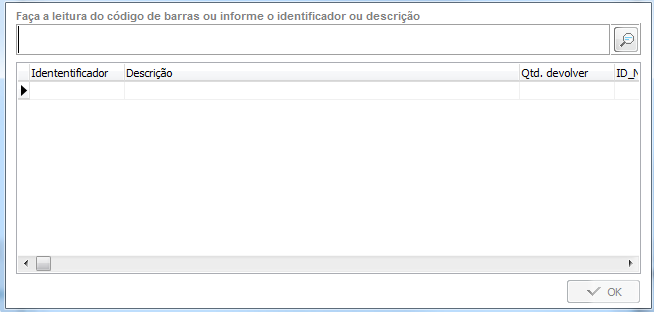 Dica! Ao clicar no botão Lançar itens a devolver será aberta uma tela para facilitar a busca de itens!