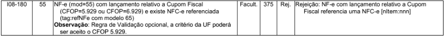 Quando for emitida uma NF-e com o CFOP igual a 5929 ou 6929 e for referenciada uma NFC-e (modelo 65), poderá ocorrer a mensagem. Caso ocorrer a mensagem é devido a SEFAZ do seu estado não aceitar o CFOP 5929 / 6929 para a emissão de uma NF-e vinculada a uma NFC-e.