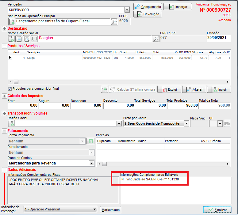Então, poderá finalizar e transmitir sua nota.