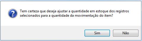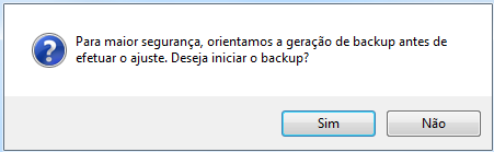 Após confirmar os itens que deseja alterar, marque o Checkbox ao lado de cada um, ou, caso queira alterar todo estoque, clique em Marcar/Desmarcar e clique em Aplicar Ajuste, será apresentada a notificação juntamente com a necessidade de efetuar o backup;