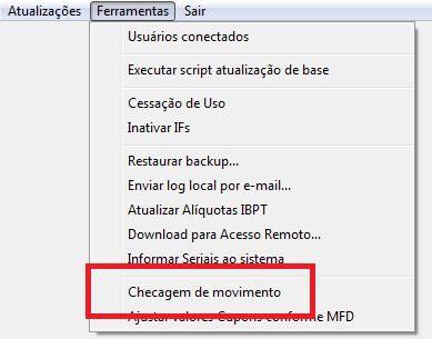 Clique em Ferramentas - Checagem de movimento e informe a senha do supervisor;
