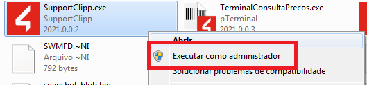 Na pasta que abrirá, localize o SupporClipp.exe, clique com o botão direito no executável e em seguida Executar como administrador;