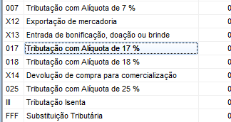Localize a Tributação do seu estado e clique duas vezes na mesma;