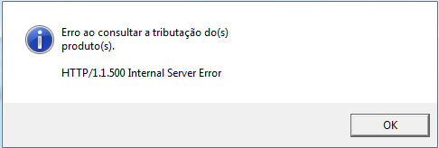 Erro ao consultar a tributação dos produtos - HTTP/1.1.500 Internal Server Error
