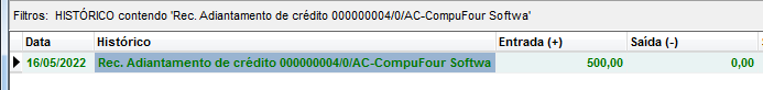 Caso tenha crédito e seja recebido normalmente, será criado um registro no contas a receber com a inscrição Ref. Crédito adiantamento.