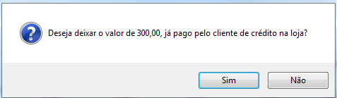 Ao efetuar a devolução o sistema irá questionar se deseja deixar o valor como crédito na loja, clique em Sim, caso clique em Não, o sistema procederá com a devolução sem informar o crédito ao cliente;