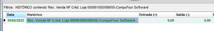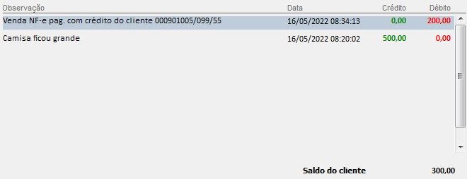 Após concluir a venda, o lançamento do valor referente ao crédito da loja poderá ser visualizado no cadastro do crédito do cliente:
